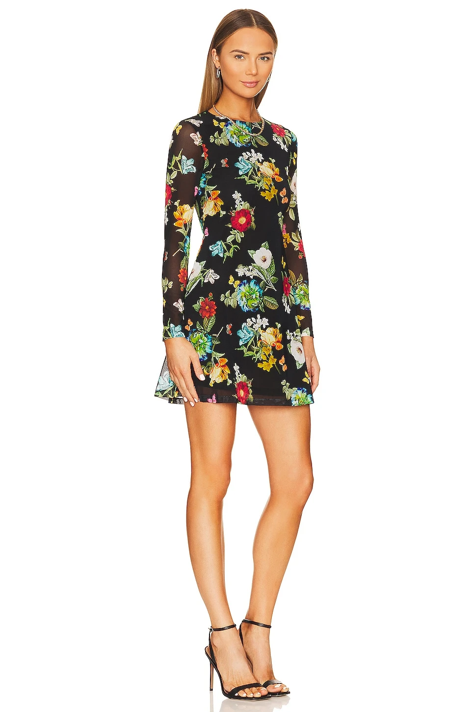 Alice + Olivia Delora Long Sleeve Flare Mini Dress Atrium Floral Small