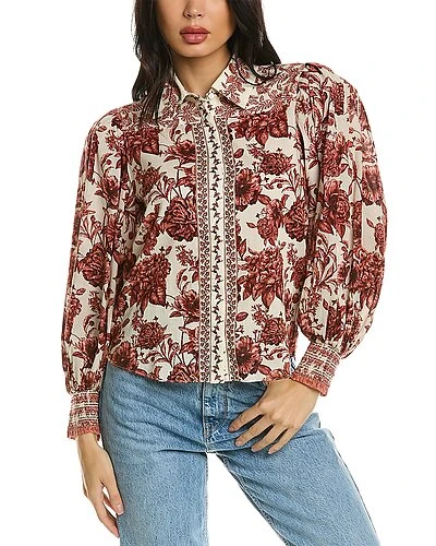 - Tiffie Blouse in journey floral rose with puff sleeves, smocked cuffs, and box pleat at back